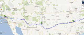 For example, Nashville, Memphis, Little Rock, Tuscon and Phoenix (among many others) are all on the route I'm taking. Atlanta, Chattanooga, Birmingham, Shreveport, Oklahoma City, Austin, and Lubbock (among many others) are not on my route but are not inconceivably far off of it. Omaha is too far. Denver might be do-able, but it's a pretty long way from where I want to be. You get the idea, I hope.